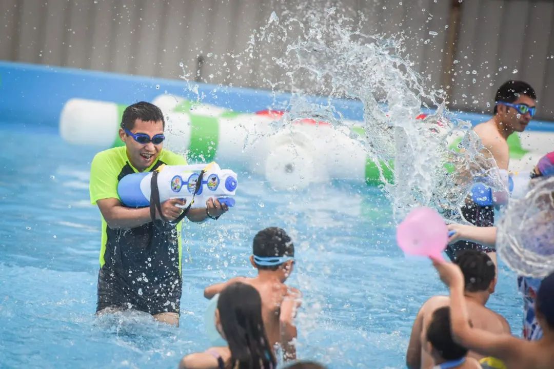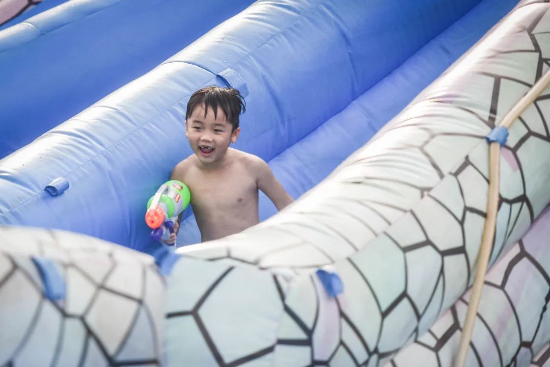周末时候,园区还会举办水上拔河、活力大闯关等主题活动。上周末,园区举办了儿童泼水嘉年华活动和活力大闯关比赛。