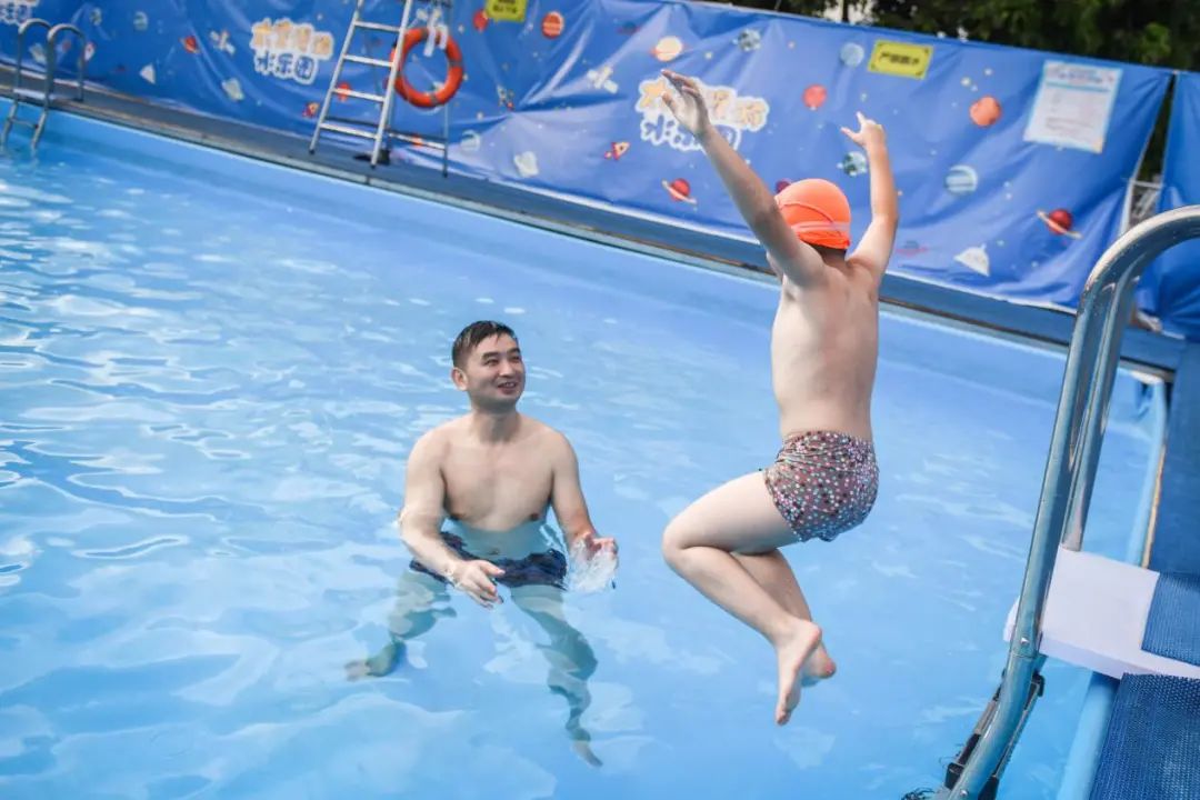 园内还配备了游泳池,25x18米,深1.3米,由专业教练提供游泳培训课程。来这里,一边玩一边学游泳。