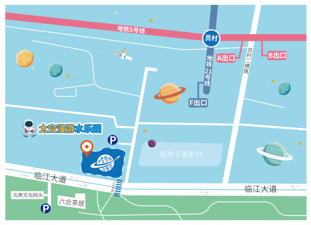 太空漫游水乐园共8000多平方米,按“八大行星、航天科技、太空探索、互动研学、水流原理”等研学主题设计,配备星际太空站、地球轨道、丛林探险、水上闯关、北极戏水、水上足球等装配式戏水设备。