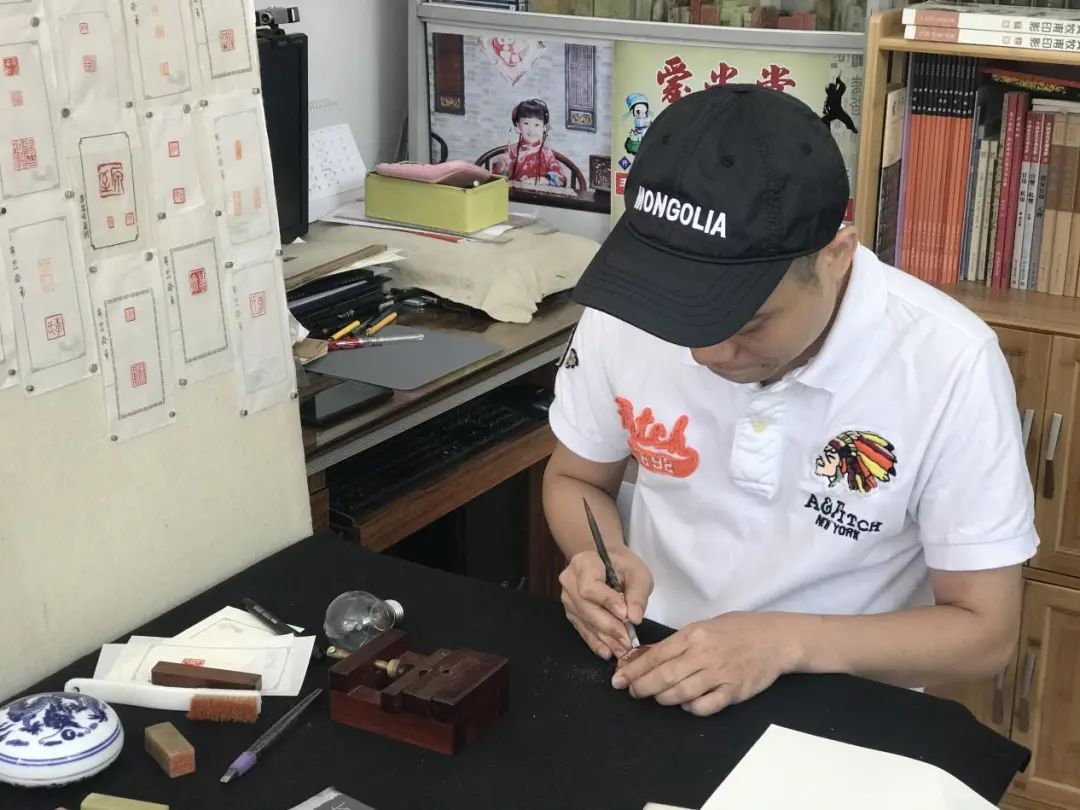 篆刻艺术七分在篆,三分在刻,最难、最耗时的就在这“七分”里。篆即篆书,每刻一个章都需要先“识篆”。