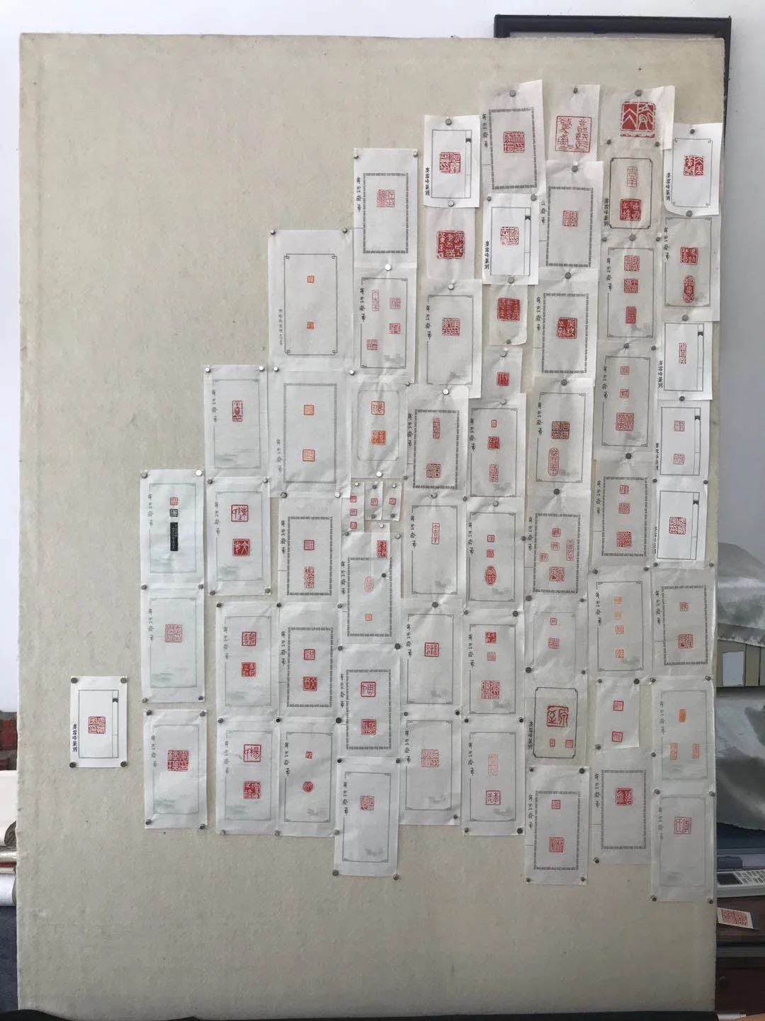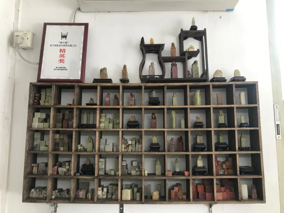 因为篆刻,身边、网络上多了很多找他刻章的人,他将盖了这些章的印签,一个个钉在了一块“作品墙”上,摆在了“寂云斋”中显眼的位置,这是让他引以为傲的一角。