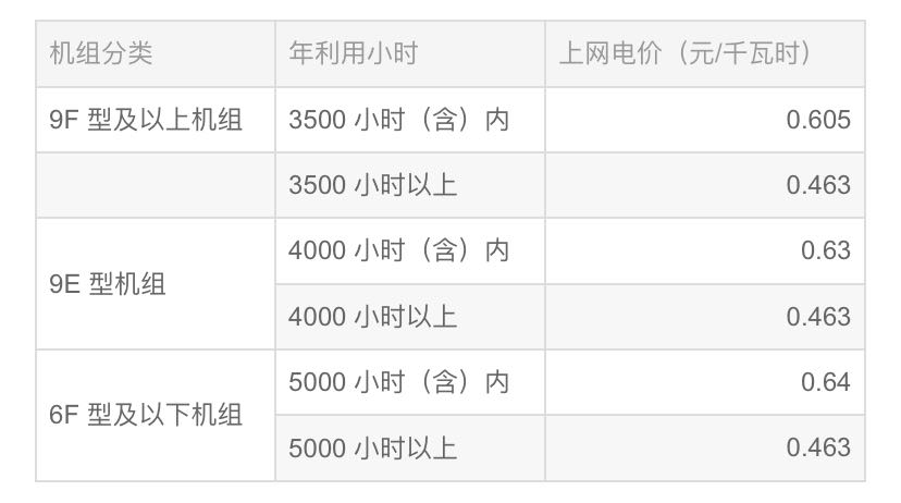目前,广东省使用澳大利亚进口合约天然气的 LNG 电厂的上网电价统一每千瓦时降低 0.049 元(含税,下同)。据悉,除第一点的机组外,全省其他天然气发电机组分为三种类型,分别为 9F 型及以上机组(指单机容量等于或大于 9F 型燃机的机组)、9E 型机组、6F 及以下机组(指单机容量等于或小于 6F 型燃机的机组)。各类型机组在限定的年利用小时数内,执行规定的上网电价;超过部分的上网电价统一为每千瓦时 0.463 元。