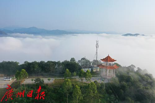 山峰如大海中嘅海島,一時喺雲海中隱沒,一時又喺雲海中浮現。好似白紗一樣飄浮嘅雲霧不停咁喺山峰間遊盪,時而掠過田野和村莊,時而輕輕將增江河籠罩,時而喺樹林中瀰漫。升騰嘅雲霧有時將觀景台團團圍繞,令人感覺如墮十里雲煙,如幻如夢。