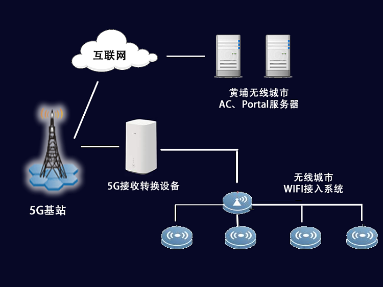“5G转WIFI”,就是将5G传输,通过专用的5G接收设备(比如5G CPE或工业级路由器),将5G转换为WIFI热点的传输网络,将5G的高速率通过WIFI热点的方式提供给市民高速上网。