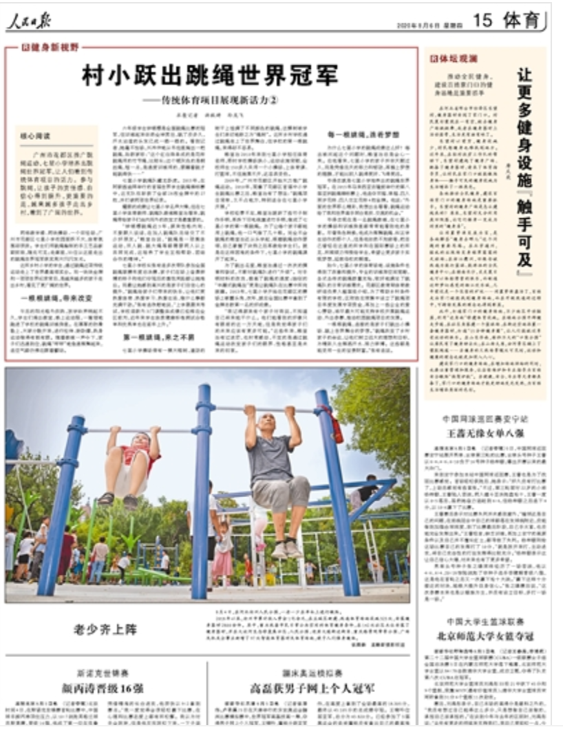 昨天,广州花都一所小学因为培养出了跳绳世界冠军,登上了人民日报。