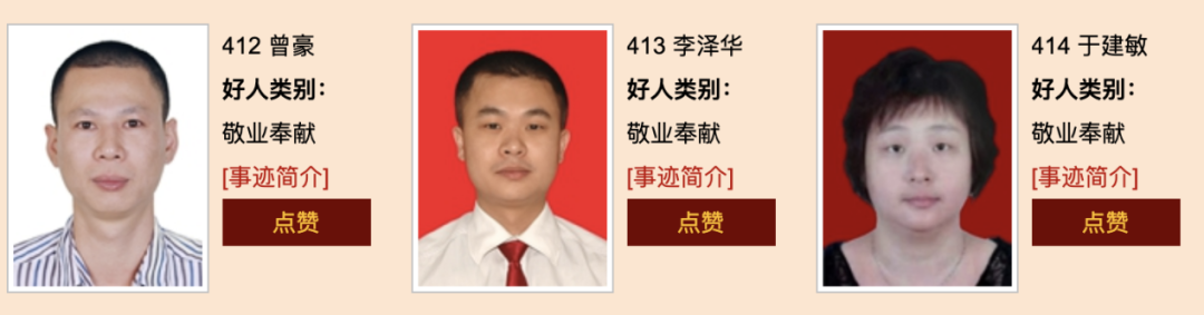 “敬业奉献”类候选人: