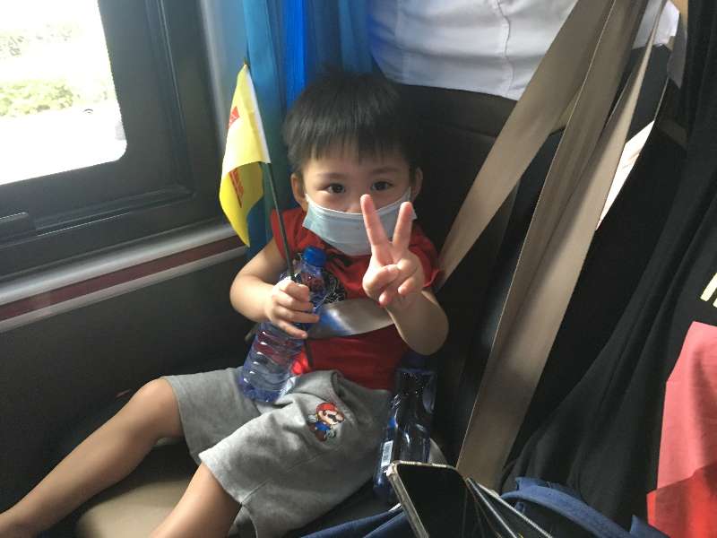 广州小游客上了旅游大巴之后自觉佩戴口罩