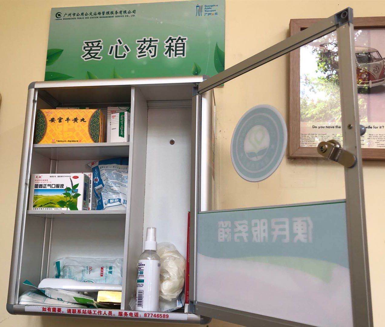 另外一家设置在天河区某营业厅内的户外职工小休站直接和营业厅打通,座椅舒适、环境敞亮。小休站的便民药箱里面准备了创可贴、风湿跌打药酒、感冒药、藿香正气水等药品及酒精湿巾。此外,如果遇到下雨天,户外劳动者也可以直接取用小休站准备的一次性雨衣。