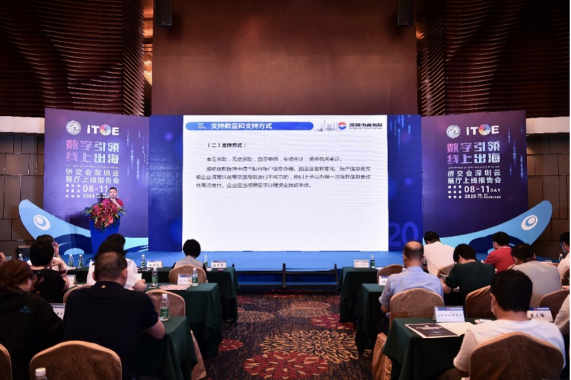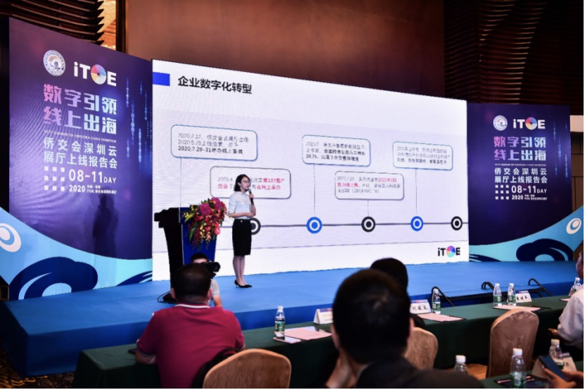 2020年8月11日, “数字引领•线上出海”侨交会深圳云展厅上线报告会在深圳绿景酒店三楼会议厅成功召开。以"数字引领•线上出海,提升企业国际竞争力"为主题,本次报告会重点展示“ITOE侨交会深圳云展厅”创新会展模式、解读疫情之下外贸中小企业如何通过数字化转型,并带来2020年度最新中央外经贸发展专项资金政策宣讲。