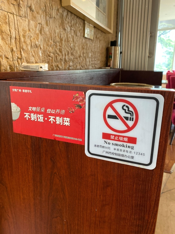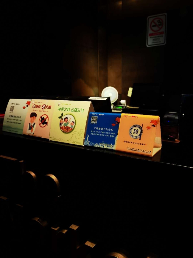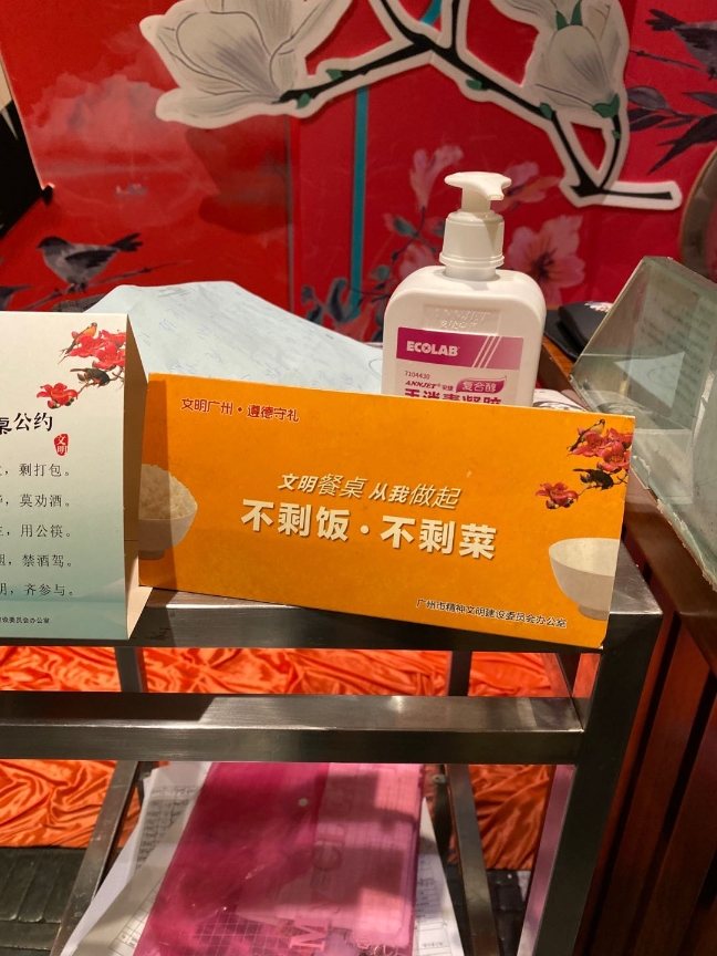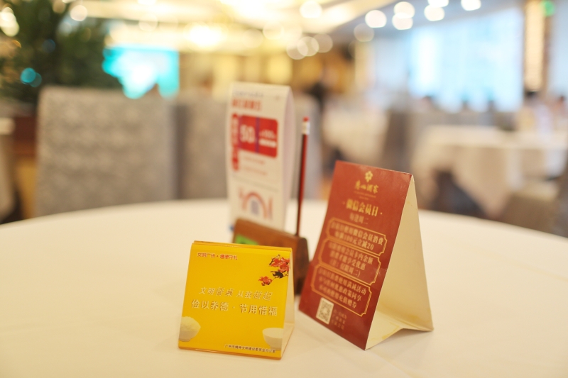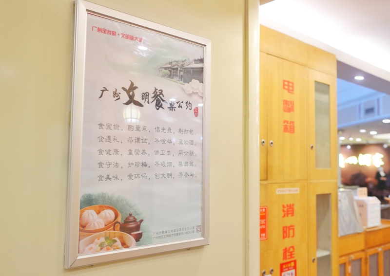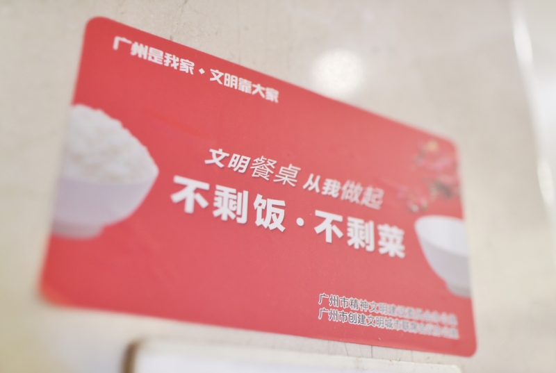 在百福广场的广州酒家,记者看到墙面上粘贴着“节约粮食”的宣传海报,在店内餐桌上摆放着“节俭养德”或“文明餐桌”或“光盘行动”的文明餐桌宣传标牌,食客一眼便能看见。门店总经理何女士说,此前他们还会使用门口的公共电子屏滚动播放文明餐桌的公益广告宣传,提高市民文明就餐知晓率,并用餐桌上的宣传标牌来创造良好的文明就餐氛围,“通过深化’光盘行动’,发挥主体作用,加大节约降耗工作力度,主动引导广大消费者合理消费、理性点餐、不剩饭菜、剩后打包,减少厨余垃圾,希望能为带动树立节约意识,减少’舌尖上的浪费’出一份力 。”