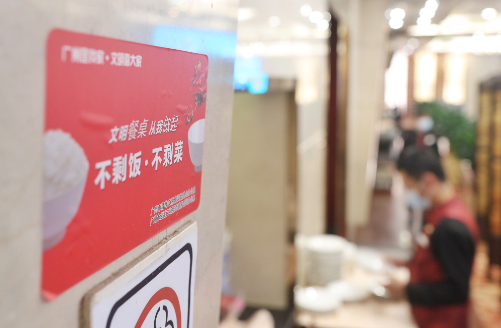 今天,记者走访广州多家餐厅,见到不少餐厅里在醒目位置给作出“不剩饭、不剩菜”的温馨提醒,服务员在食客点餐时,也不忘提醒份量。更有“节约达人”把“打包”意识贯彻到底,吃不完的食物打包回家吃;点餐宁愿点少也不点多。