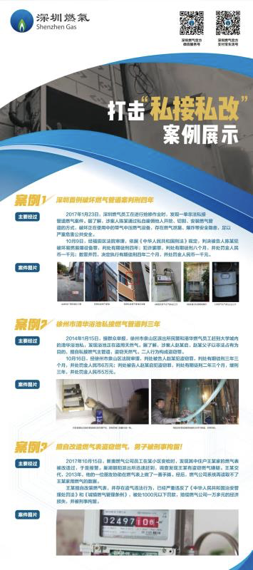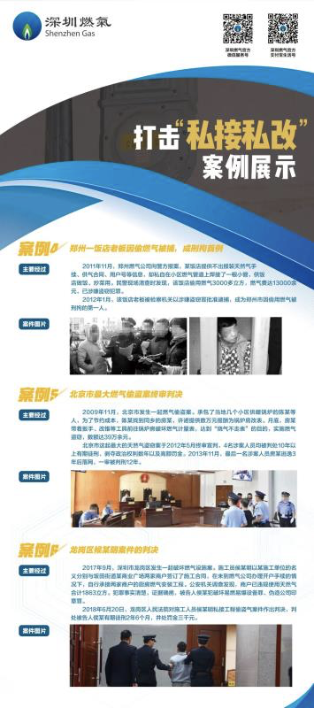 私接私改燃气管道?发现一起、严查一起,坚决移送公安司法机关严肃处理!11日,记者从深圳市燃气集团获悉,该集团对涉嫌破坏燃气管道、偷盗气等违法犯罪的行为坚持“零容忍”态度,告诫伺机破坏燃气管道、偷盗气的不法分子悬崖勒马,否则必将受到法律的严惩,对私改燃气管道将不予通气。