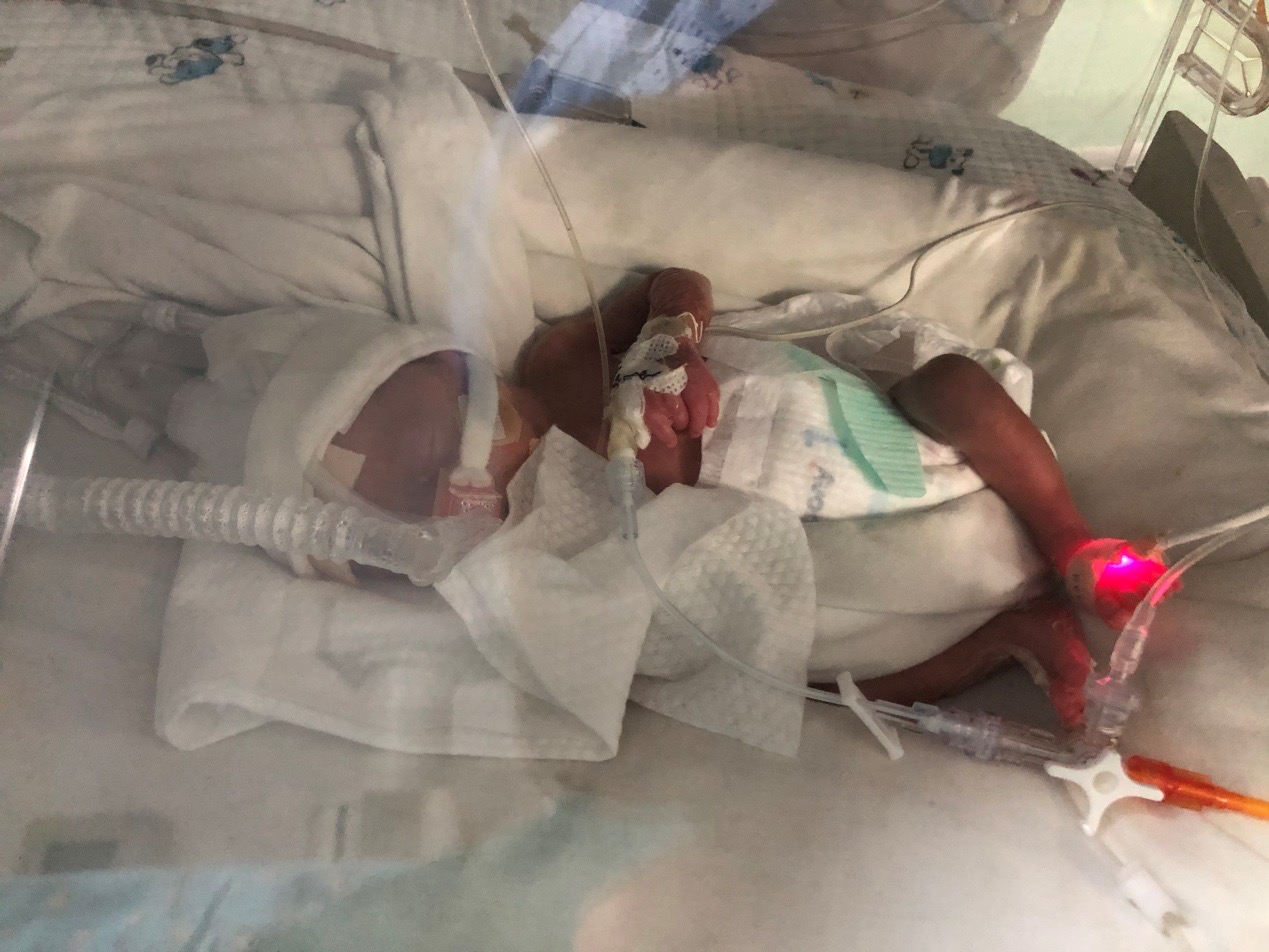 今年31岁的她查出怀上双胞胎时,一家人都很惊喜。然后,这份惊喜并未持续多久,2月8日她因腹痛到广医三院就诊,检查提示有流产先兆,她便一直住院保胎,希望能尽量“撑”到28孕周。然而,到了4月上旬,阿婷还是提前破水了。广医三院产科尽最大努力为她继续保胎,直到4月17日阿婷出现强烈宫缩,胎龄仅25周的小姐弟早早地来到了这个世界。