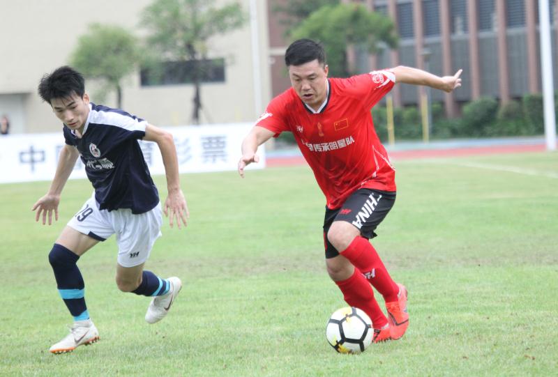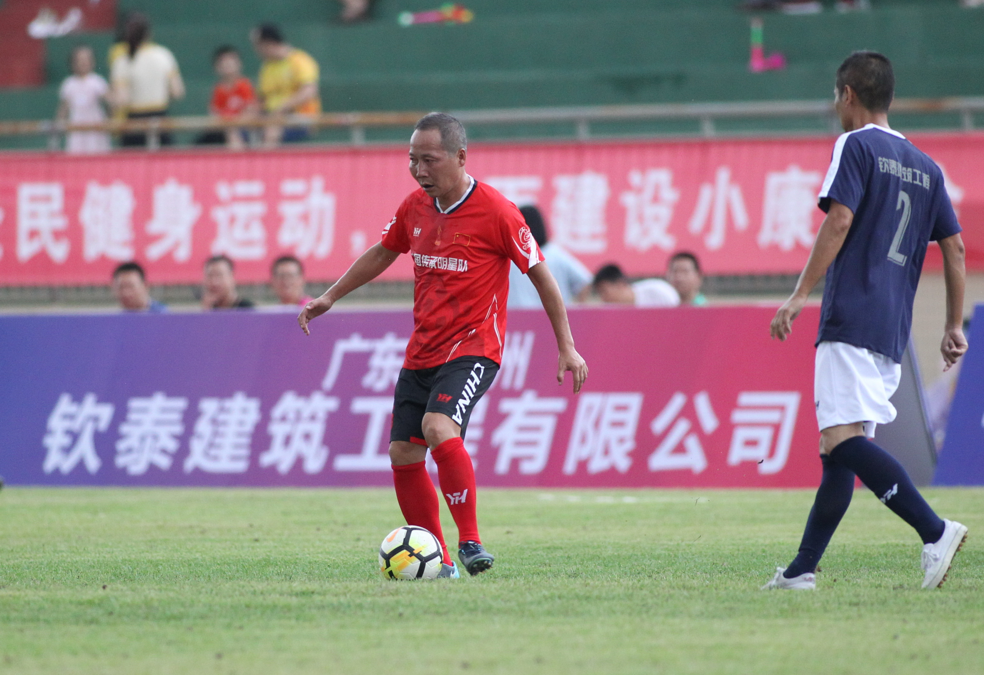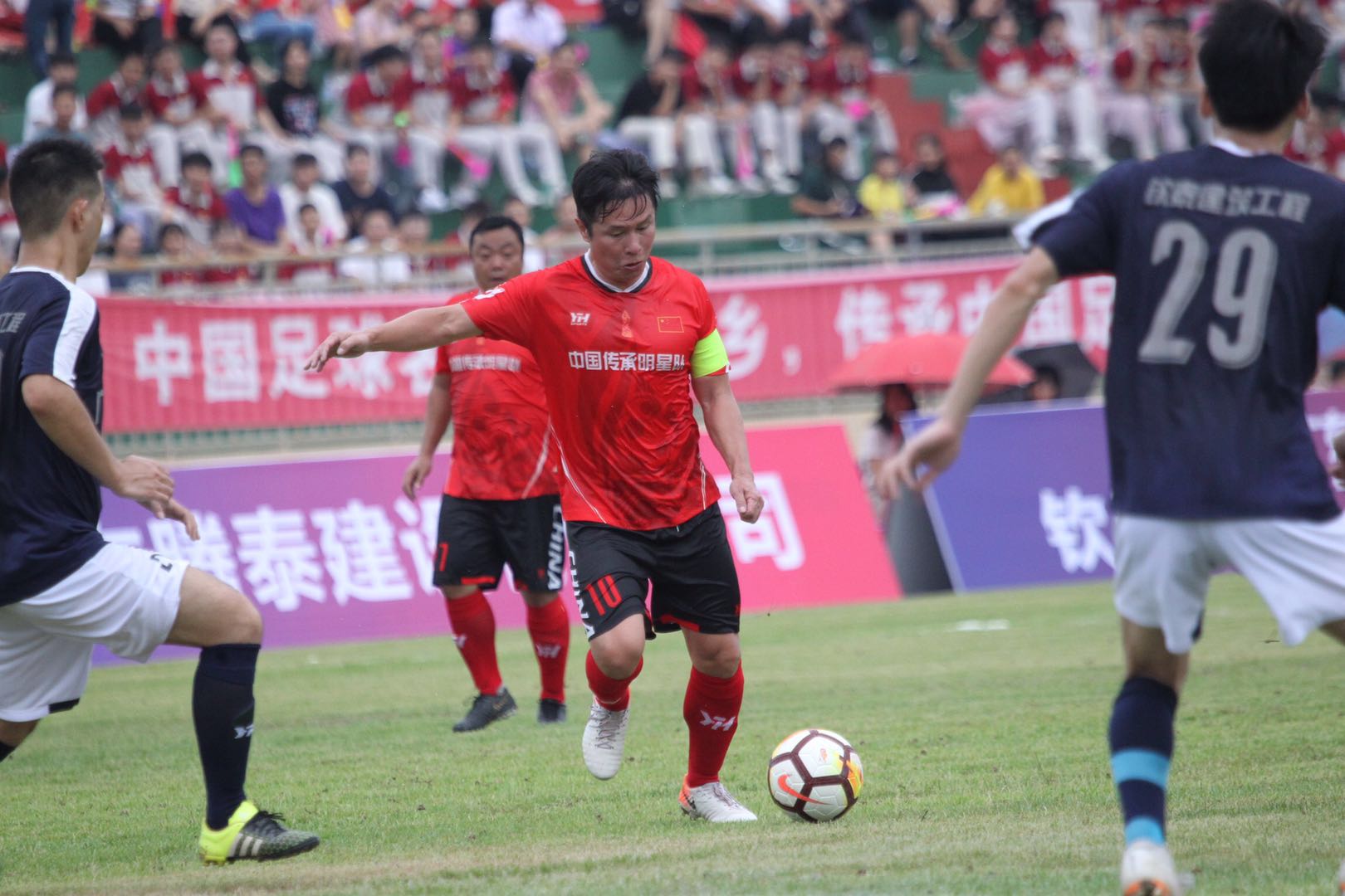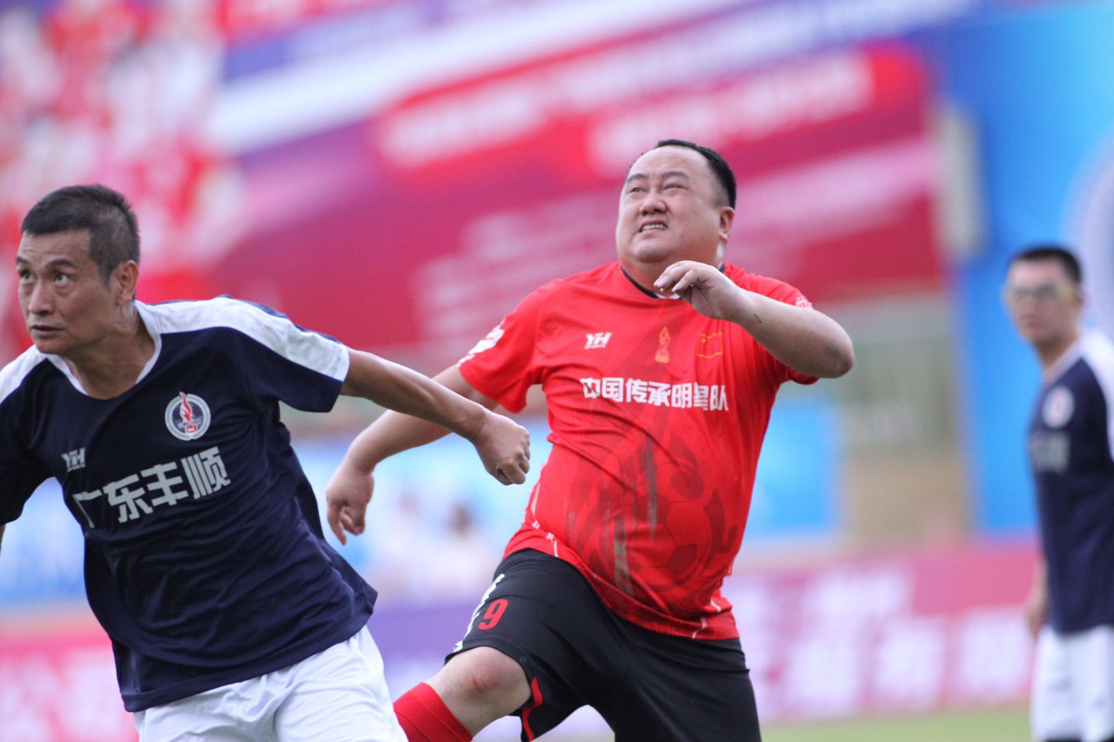 表演赛在微雨中进行,上半场中国传承明星队主力尽出,彭伟国、胡志军、谭恩德、彭伟军在进攻端打出多次配合。开场仅3分钟,彭伟国就通过一次直接任意球的机会先拔头筹。随后,快马李健右路下底传中,胡志军门前包抄一蹴而就。接着,李健又接应彭伟军的一个左路传中,头球破网。上半场,中国传承明星队以3比0取得领先。
