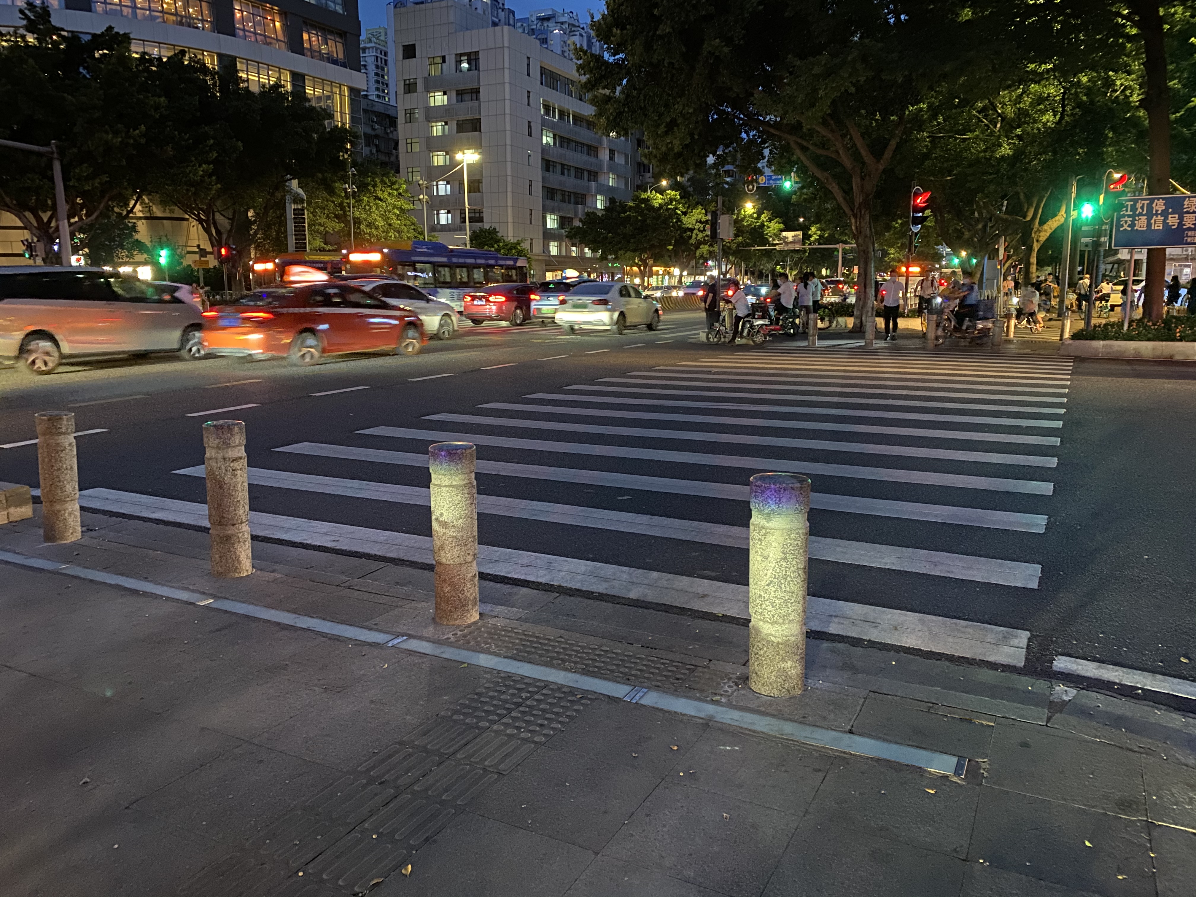 海珠广场周边重新铺设了花岗岩路面,而在斑马线两边的花岗岩中,都嵌入了细长的长方形灯具。这些灯具,就是智慧的奥妙所在。