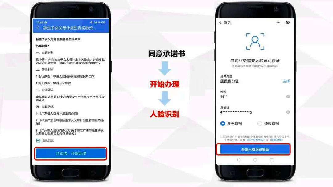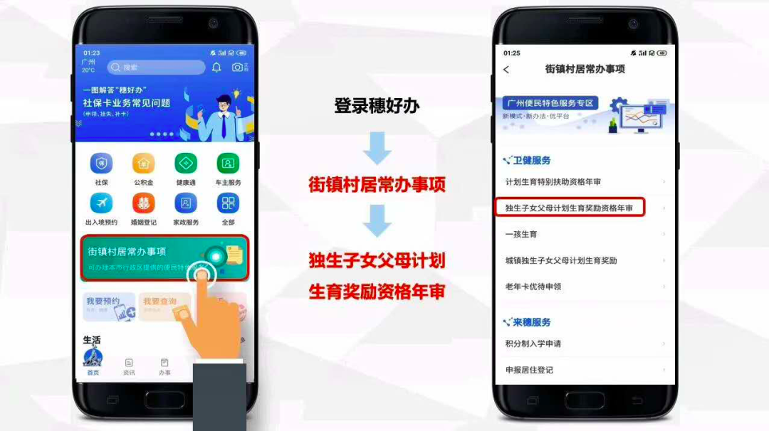 近日,广州市越秀区各社区发布通知:2020年广州市独生子女父母计划生育奖励资格开始年审了。今年有个好消息,市民可以通过“穗好办”APP在线办理年审,实现“零跑动”。不方便使用手机办理的申办人,依然可以携带身份证和户口簿原件前往户籍所在地社区居委会现场核验。