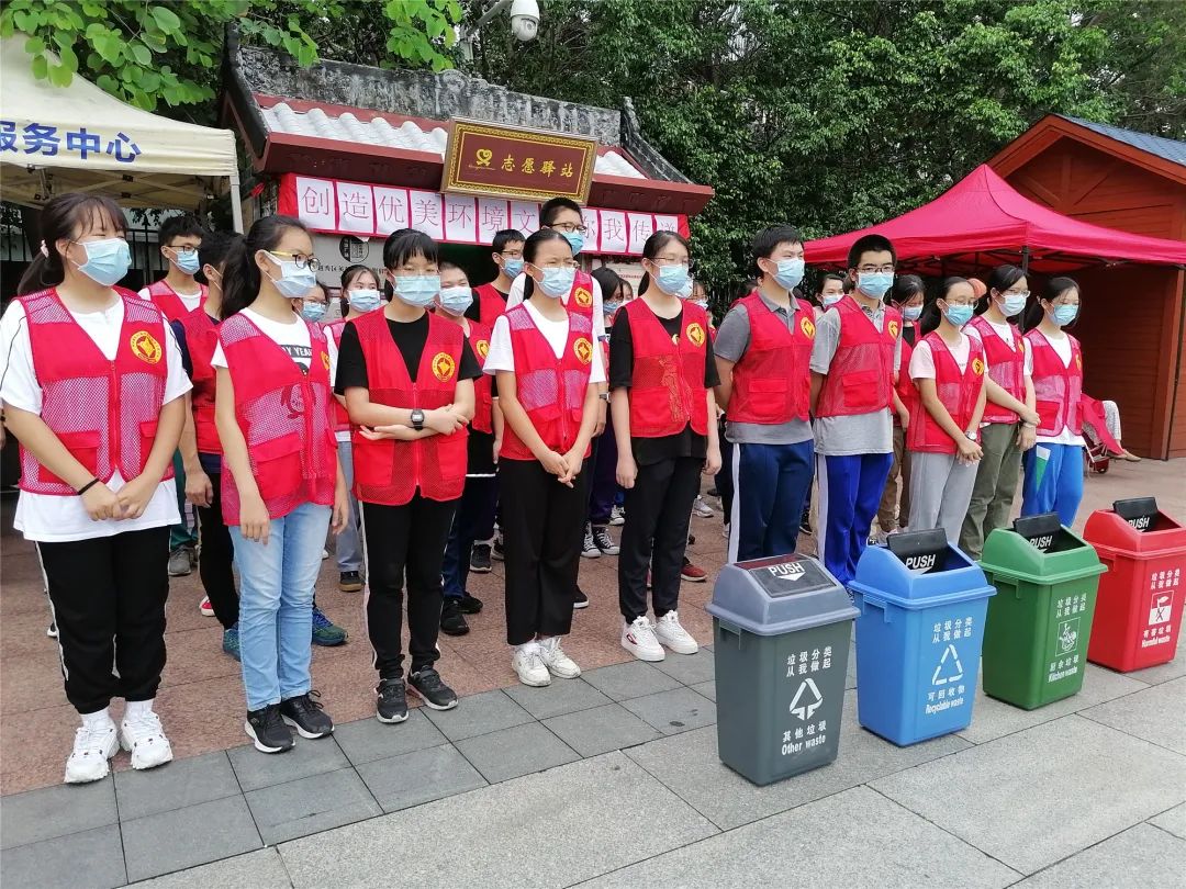 活动现场设置有四色垃圾桶模型和生活垃圾宣传栏,驿站志愿团队成员首先借助模型和宣传栏向青年志愿者们讲解垃圾分类知识,包括可回收垃圾、有害垃圾、餐厨垃圾和其他垃圾四类生活垃圾具体如何界定等。
