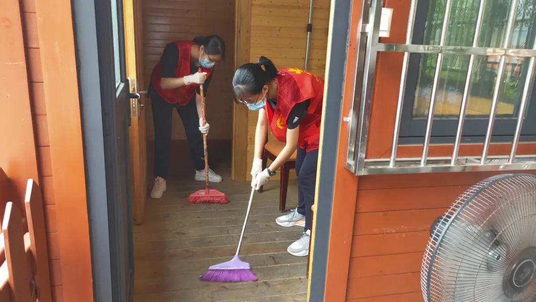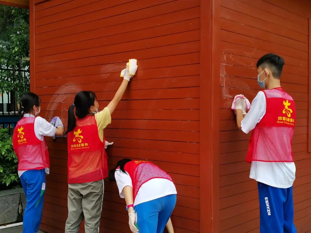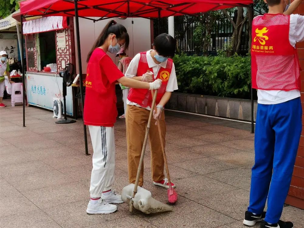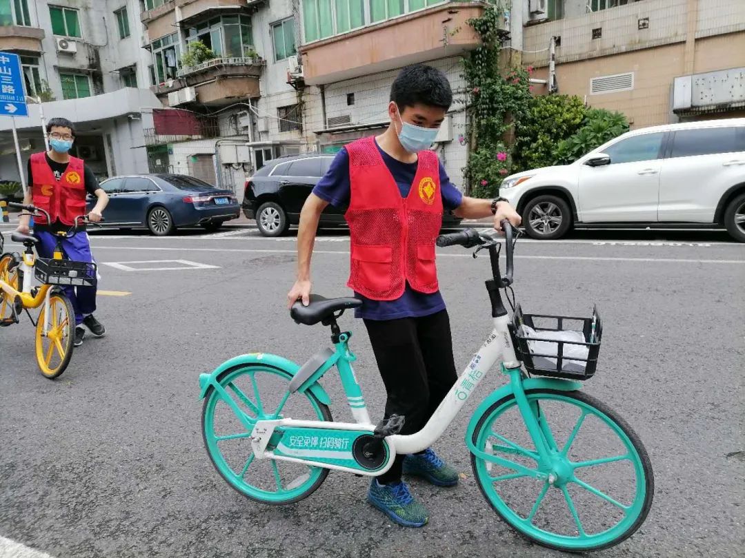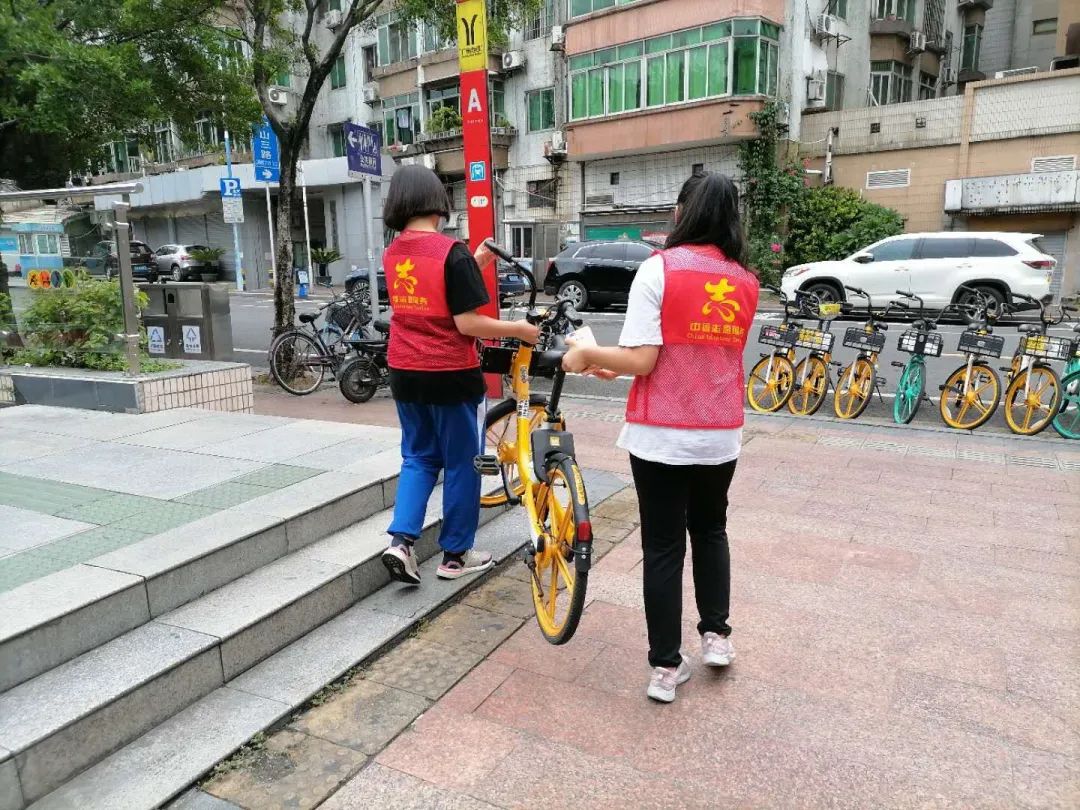 随后,志愿者们被分成三组,两组负责到英雄广场附近路口整理共享单车,一组负责清洁打扫广场上的保安亭及附近区域,以实践行动守护美丽家园。