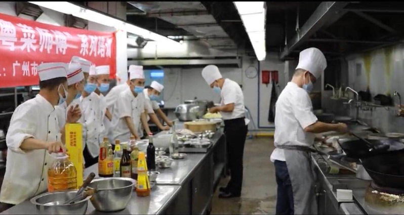 经过一天中最忙碌的午餐时段,白云区机关食堂的15名师傅集中到了灶台前,参与学习杨桃咕噜肉、碧绿桂鱼卷、杨桃炖蔗鸪两菜一汤的做法。