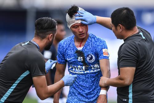 大连人广东小将林良铭这场比赛力拼头球流血。