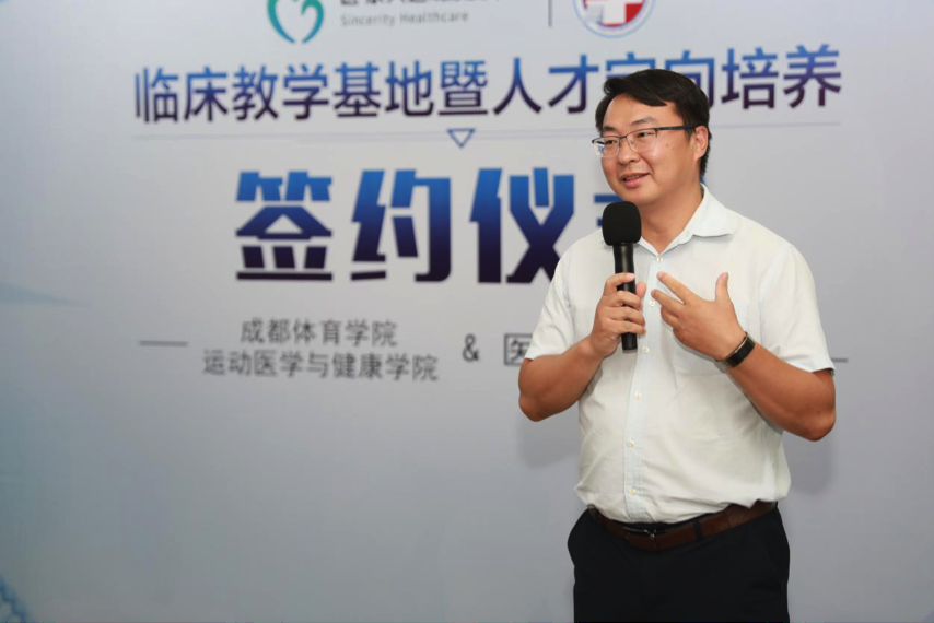 “一直以来,优秀的企业和优秀的人才之间缺乏有效对接的渠道,此次我们合作成立临床教学暨人才培养基地,就是希望能搭建起这样一个平台。”远道而来的成都体育学院运动医学与健康学院常务副院长廖远朋致辞表示。据介绍,成都体院是国内最早开设体育医院的高校,早在1958年就开设了体育医院,在运动医学领域处于领先位置。多年来,成都体院为体育行业输送了大量医学人才,被业内称为国家队队医的“摇篮”。成都体院也是国内最早开办运动康复专业的高校之一。
