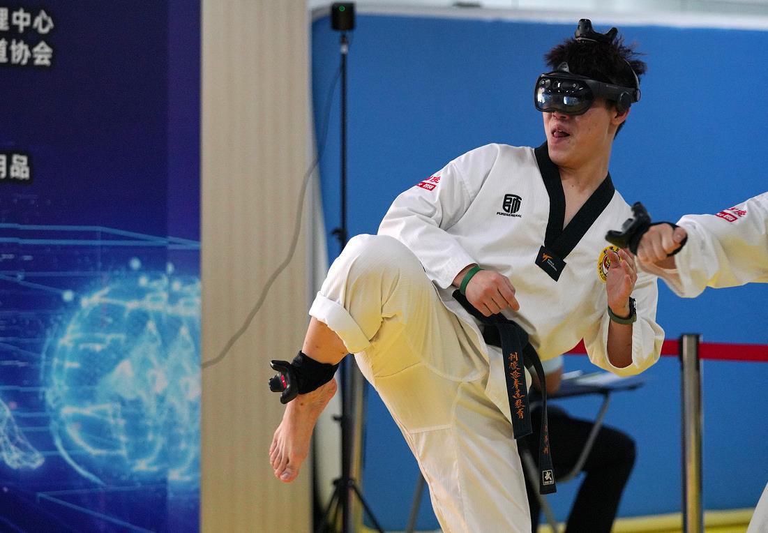 此外,在荔湾主会场还设有跆拳道MR邀请赛,首次将体育与科技相结合,利用MR技术(Mixed Reality,混合现实技术)将虚拟与现实融合到一起。赛场上,队员们的装备与往常不同,除道服外,他们还头顶MR眼镜,手戴追踪器,在裁判的一声令下,开始了激烈的“无实物”对战,双方队员各自使出浑身解数,柔和各种跆拳道专业动作轮番上阵,比赛过程跌宕起伏,场面扣人心弦,吸引周边市民驻足拍照观看。