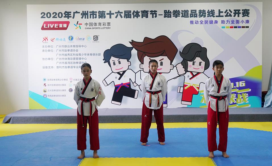 8月16日,由广州市群众体育指导中心主办,广州市跆拳道协会承办,广州市体育彩票管理中心协办的以“推动全民健身,助力全面小康”为主题的广州市第十六届体育节跆拳道品势线上公开赛在广州市跆拳道协会训练基地圆满结束,各赛区共吸引了300多名小小跆拳道爱好者和家长参加。