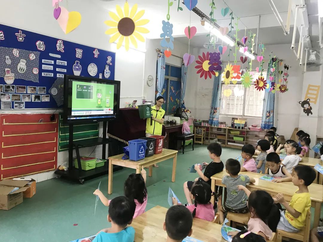 活动一开始,工作人员播放“木棉花开,为广州垃圾分类代言”宣传视频,用符合幼儿园小朋友喜好的卡通动画风宣传片吸引小朋友对垃圾分类的注意力。