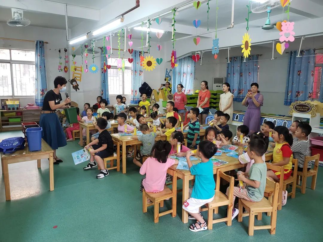 现场还派发了垃圾分类宣传单,让小朋友看宣传单上的图片和对应的垃圾桶颜色,加深印象。紧接着,由主持人向在场的幼儿园小朋友和老师讲解垃圾分类的意义以及如何进行垃圾分类等。