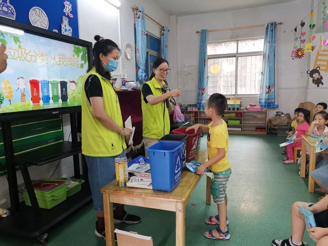 据悉,今年下半年长洲街将加大垃圾分类宣传力度,组织动员辖区内的全部力量投入到垃圾分类工作中来。近期组织多场“小手拉大手、垃圾分类一起走”宣传活动,通过与小朋友讲解最新的垃圾分类知识、互动玩游戏的方式,提高幼儿园老师和小朋友对垃圾分类的知晓率和准确率。