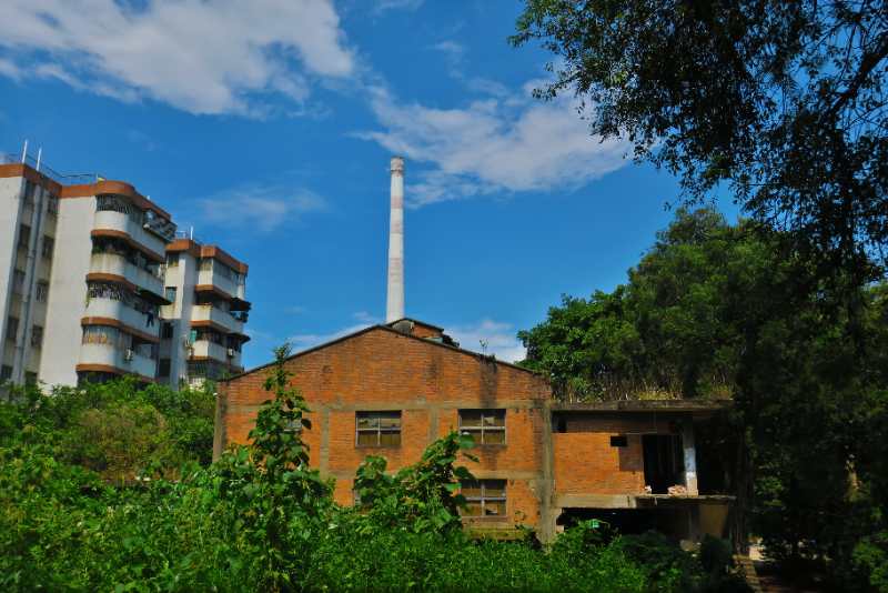 近日,记者来到海珠区南箕村以北的邓岗小区,在一栋栋旧式工厂居民楼后隐藏着一个上万平方米的院子,站在院中抬头就能看到广纸标志性的大烟囱。院内草木葱茏,但由于荒废已久显得有些寂寥,一座红砖仿苏式旧厂房静静地矗立其中,告诉人们这里曾是广东轻工业机械厂的厂区之一。