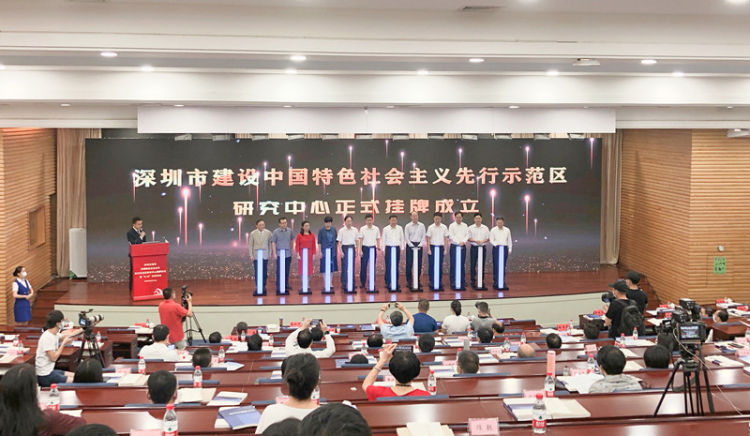 在《中共中央国务院关于支持深圳建设中国特色社会主义先行示范区的意见》发布一周年之际,8月18日上午,深圳市委党校举行深圳市建设中国特色社会主义先行示范区研究中心(以下简称“研究中心”)揭牌仪式等“8.18”系列活动,13位国际国内一流专家学者担任研究中心首批特约研究员。深圳市委常委、组织部部长、党校校长程步一为首批特约研究员颁发聘书,广东省社科联党组书记、主席张知干出席活动。