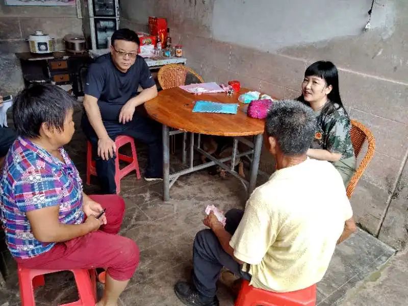 赖燕丽带着扶贫团队与大埔县、镇、村领导一起顶着炎炎烈日,对13户重点贫困户挨家挨户进行走访,逐门逐户对照帮扶“明白卡”。每到一户,扶贫团队都与贫困户亲切交谈,了解他们近期家庭状况,鼓励贫困户自立自强,通过勤劳的双手实现稳定脱贫,打赢脱贫攻坚这场战役,同时督导贫困户做好房前屋后的保洁,确保以良好的风貌迎接省第三方评估。