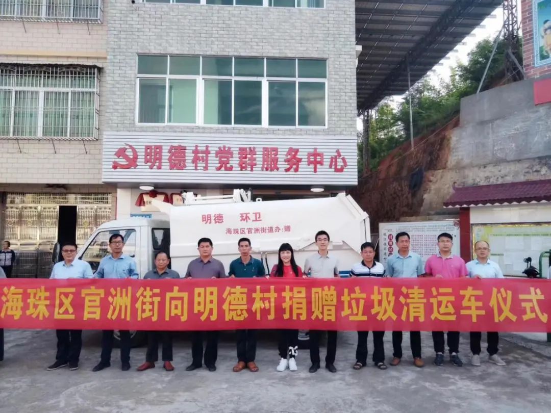 如今,金针菜和菊花已成为了明德村的致富菜和幸福花。这次,官洲街道又帮扶明德村购置全镇第一辆村级全自动垃圾清运车,以更好开展环境综合整治工作,让社会主义新农村更加美丽。