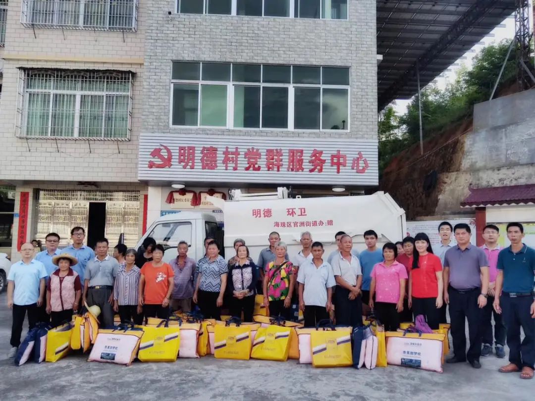 考评结束后,官洲街道向明德村捐赠了全镇首台全自动现代化垃圾清运车,并向40户贫困户发放了床上用品四件套和枕头等生活用品。