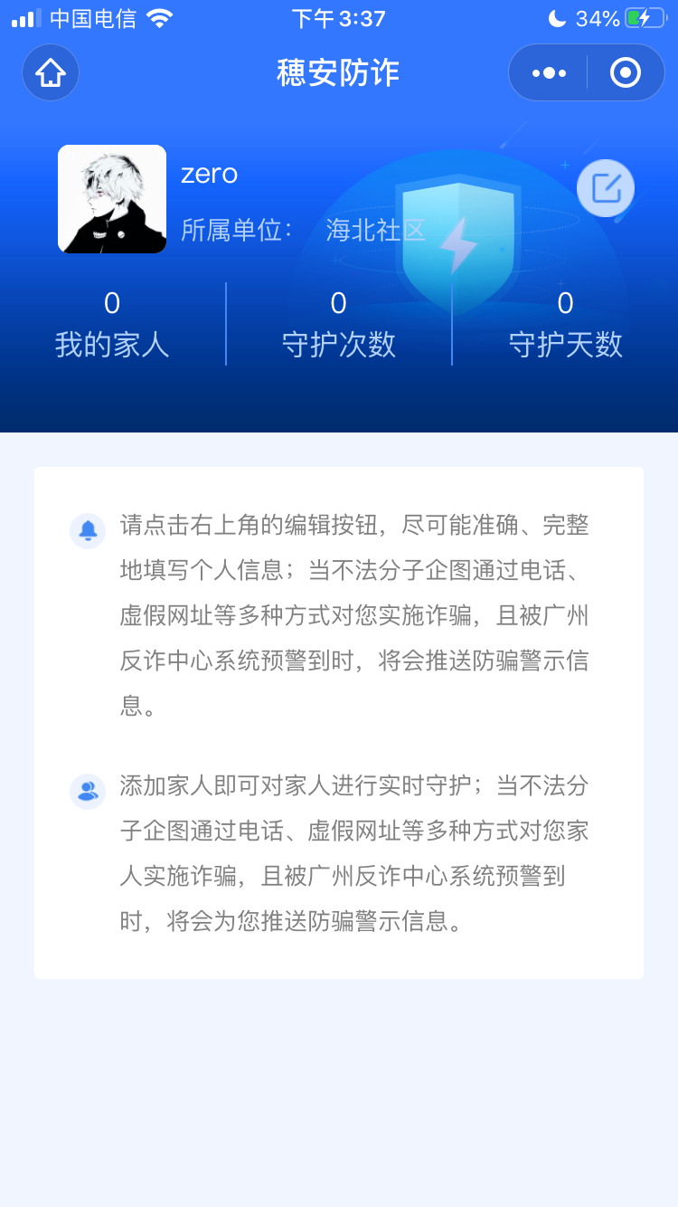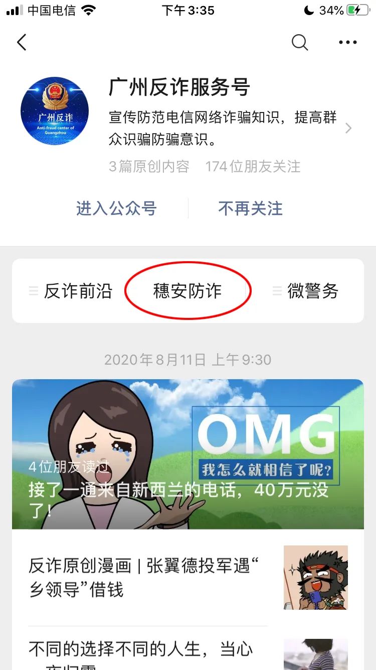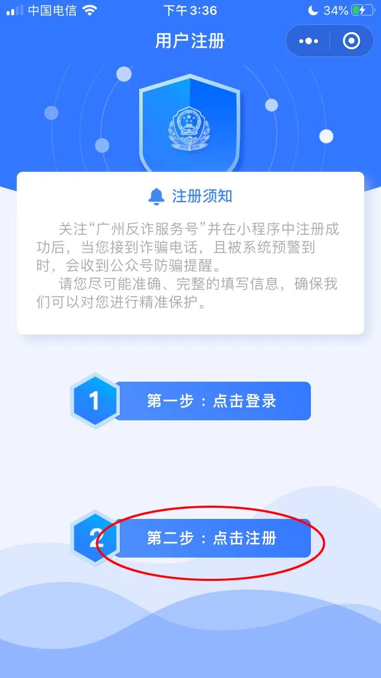 步骤一:扫码识别下方二维码,进入“广州反诈服务号”,点击“穗安防诈”,进入注册界面。