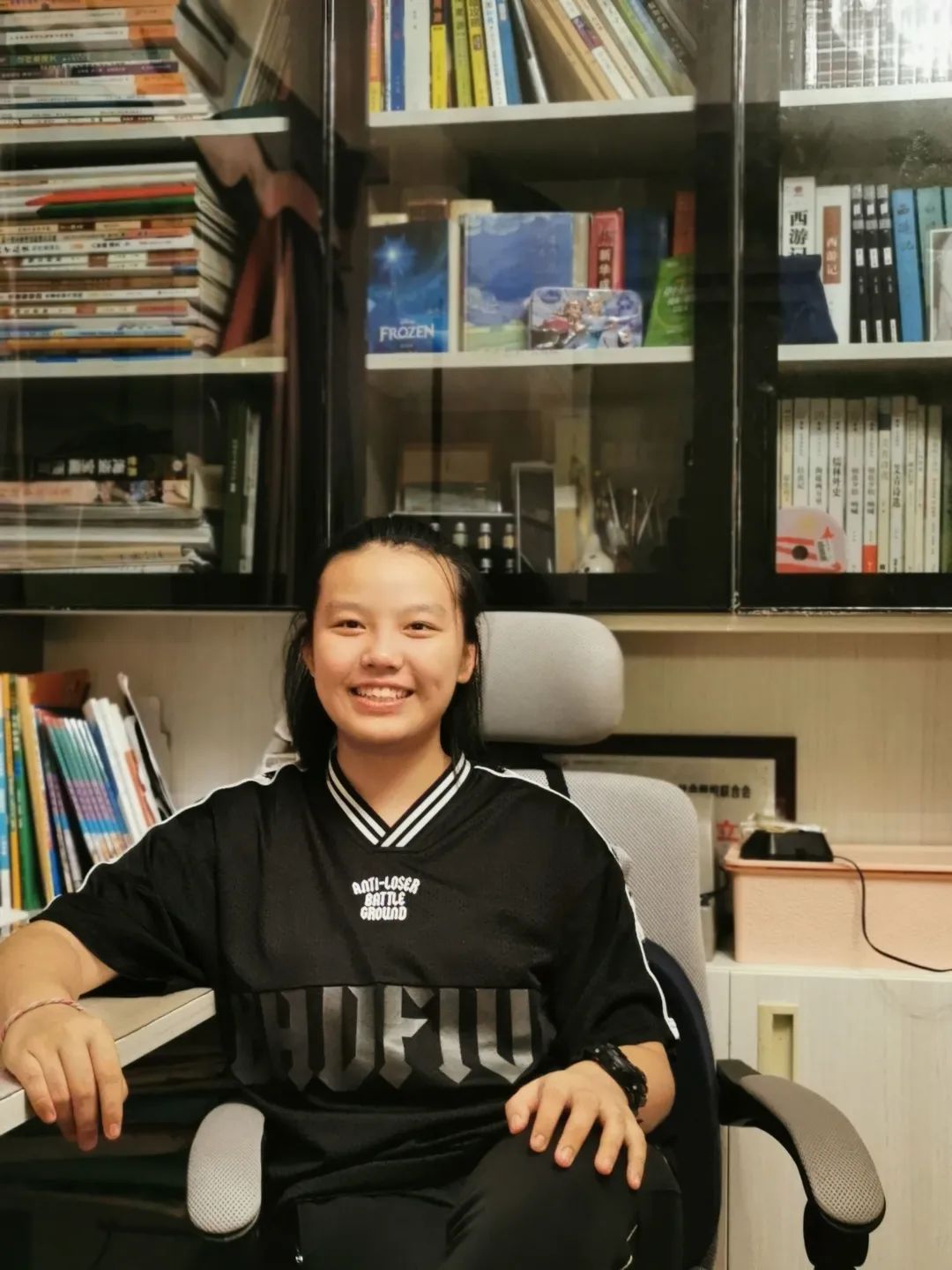 “广州外国语学校一直是我的目标,初三一整年也在为这个目标努力。”在中考中取得727分的成绩,如愿以偿地被广州外国语学校录取。