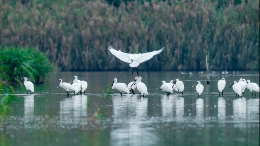 珍稀濒危候鸟黑脸琵鹭在深圳湾湿地越冬。(鹿向荣摄)