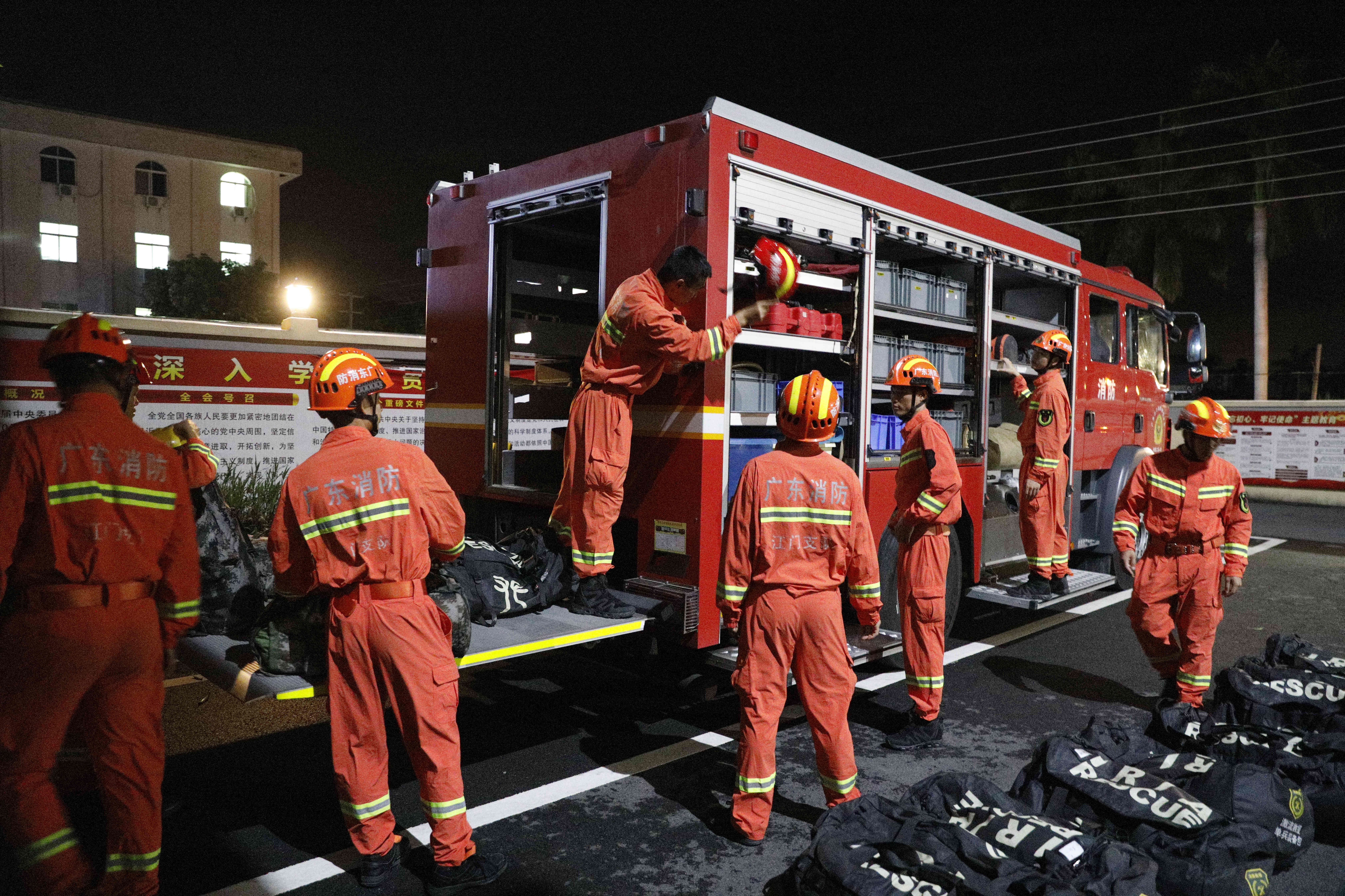 据了解,为确保救援工作的及时有序开展,广东省消防救援总队已启动跨区域力量前置预案,总队全勤指挥部、机动支队和通信保障分队共计68名指战员、14辆消防车、6艘舟艇、1套远程供水车组前置江门台山。