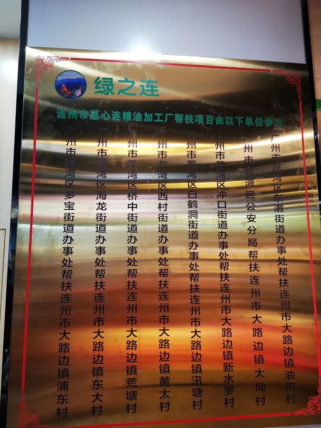 这是由荔湾区对口帮扶连州市大路边镇的荔湾区公安分局、东漖街、冲口街、西村街、白鹤洞街、桥中街、海龙街、多宝街8个帮扶单位合作建立的扶贫产品直营店。