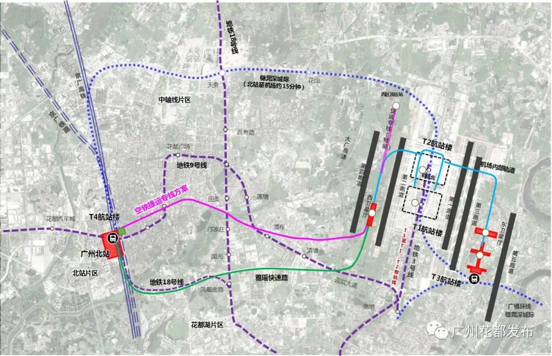 为推动空铁联运一体化,花都规划了白云机场和广州北站之间构建“2+1”多模式空铁联运体系。陆侧包括在建的穗莞深(新白广)城际轨道和雅瑶快速路,近期可实现15分钟直达机场。