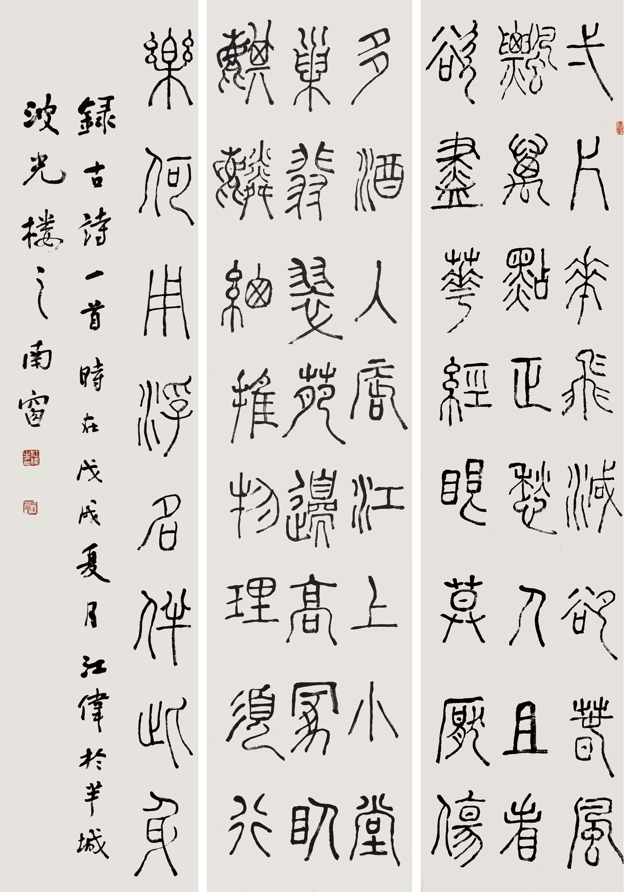 书与篆,同源而异趣、殊途而同归。江伟、周闹闹二位,皆得豫章文化氤氲,一以纤毫书汉字,一以铁笔刻文,砥砺传承,沉潜古幽,研摹汉晋,自得一格。