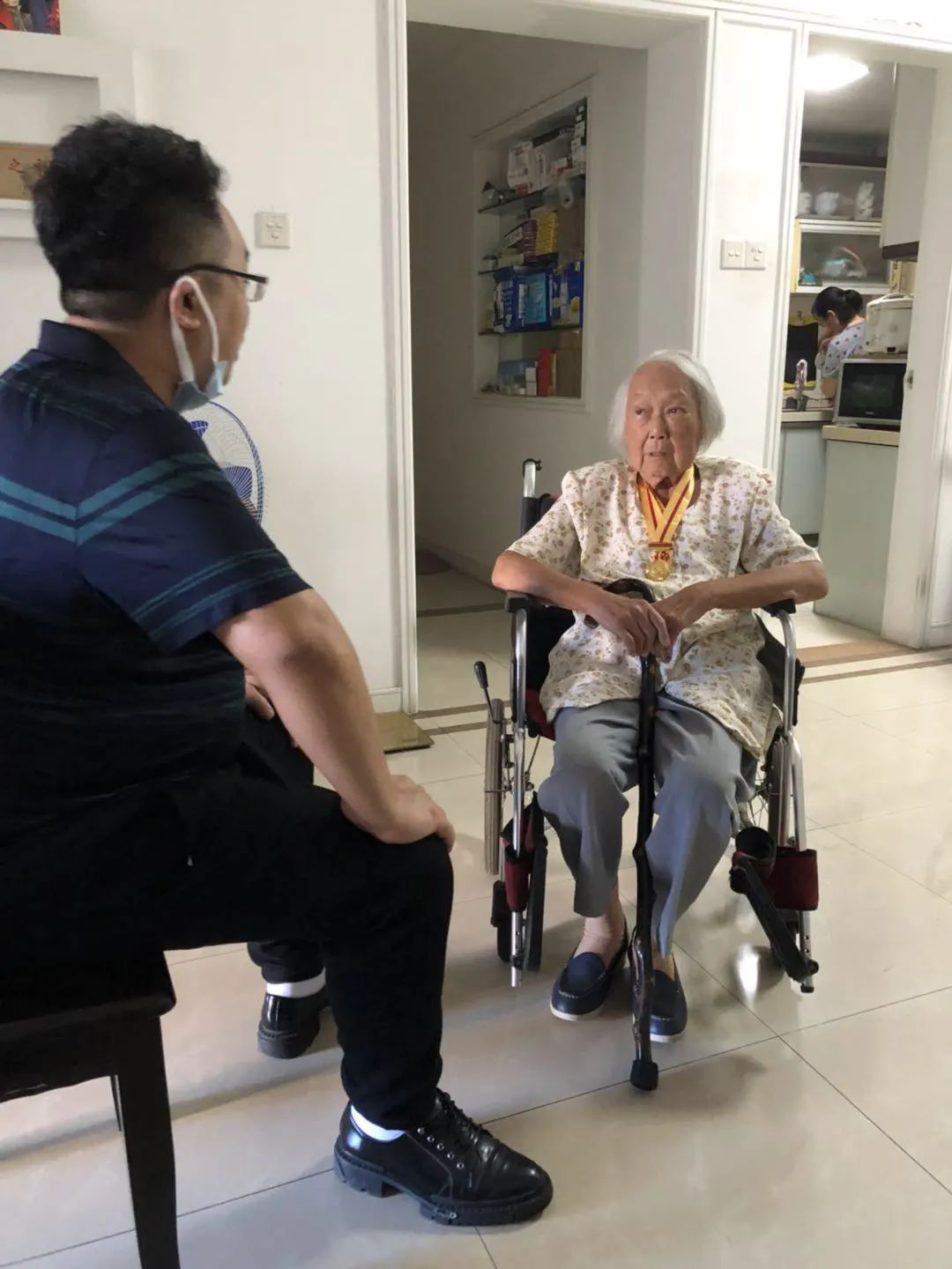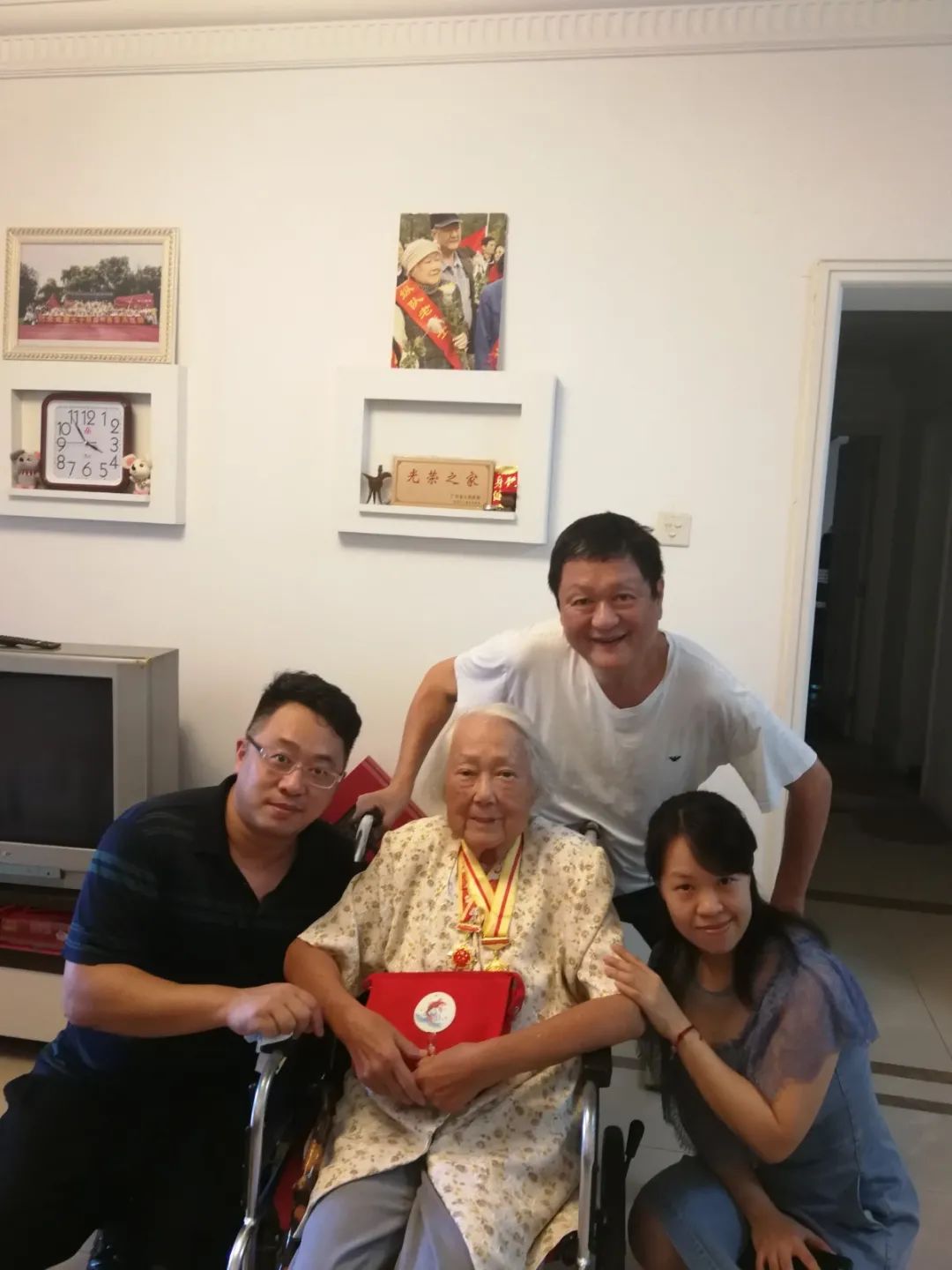 如今因腿脚不适,黄稻已从大塘街搬到番禺暂住养病,“本以为‘千里迢迢’的,你们打个电话慰问就算了,没想到你们还亲自跑到番禺来了!”面对着登门拜访的大塘街退役军人服务站的工作人员们,黄稻连连表示“很感动”、“很惊喜”,“真的非常感谢大塘街一直以来对我的关心和照顾!以前身体好住大塘街的时候,街道、社区服务站就上门送光荣牌,逢年过节关怀慰问总不会忘了我。现在我搬到这么远的番禺来,你们还是惦记着我,跑这么远来看我,看到你们大家我就像看到亲人一般,真的感到十分温暖。”