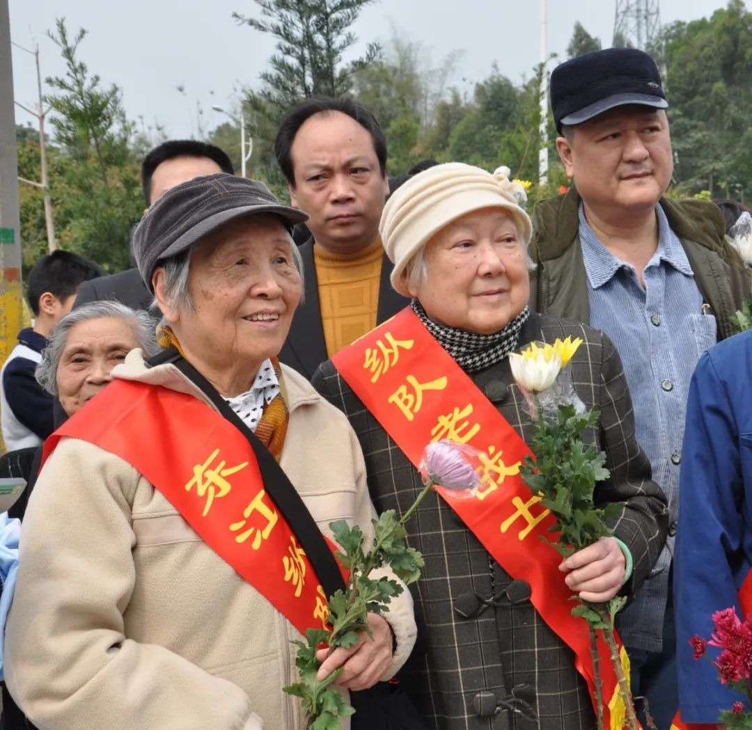 2011年3月26日,黄稻与儿子史长缨在萝岗东纵纪念广场开幕式上。(图片由受访者提供)