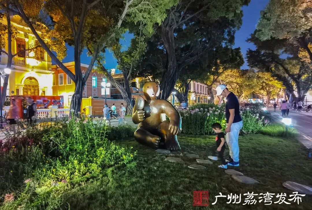 最近,首届沙面公共艺术季的启动,以及去年光亮工程的整治提升,令这件艺术品在夜色里越发璀璨华贵。