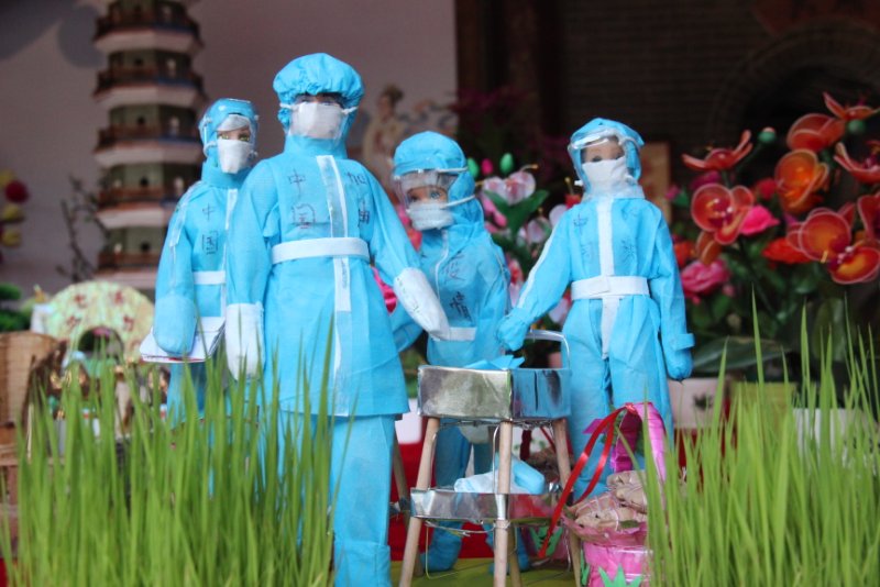 巧姐制作微型工艺品,全凭一双巧手,今年的乞巧文化节展示的微型工艺品除了传统的米花、鹊桥等作品,还增加了具有新时代气息的主题作品——“致敬最美逆行者”“垃圾分类靠大家”……