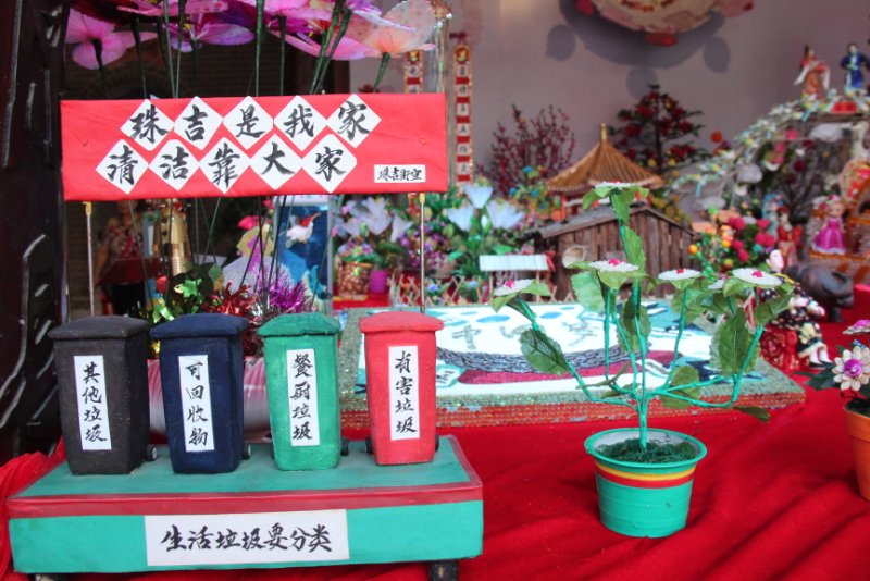 一是确保传统习俗的根不断,质不变,最大程度地减少疫情对传统文化带来的冲击;二是取消聚集性的动态七夕游园、七娘饭等活动,保留静态的摆七娘、广州乞巧文化展览等活动,开启线上线下相结合的模式;三是精简规模,将以往的六台乞巧供案浓缩在一个最具代表性的活动场所珠村明德堂进行展示,而开幕当天在明德堂呈现的正是集珠村巧姐智慧的一台“大七娘”,这也是广州乞巧文化节举办十多年以来珠村首次实现的六个团队大拼盘。