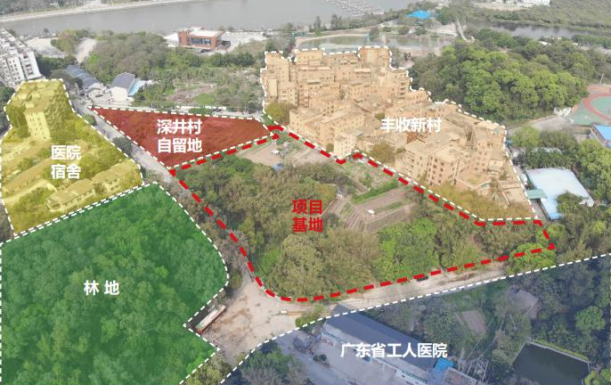 大涌湾安置房建设项目位于茅岗路以西,广园快速路以南,护林路以北。项目西临河涌,拥有良好的景观,东临区域内规划路。