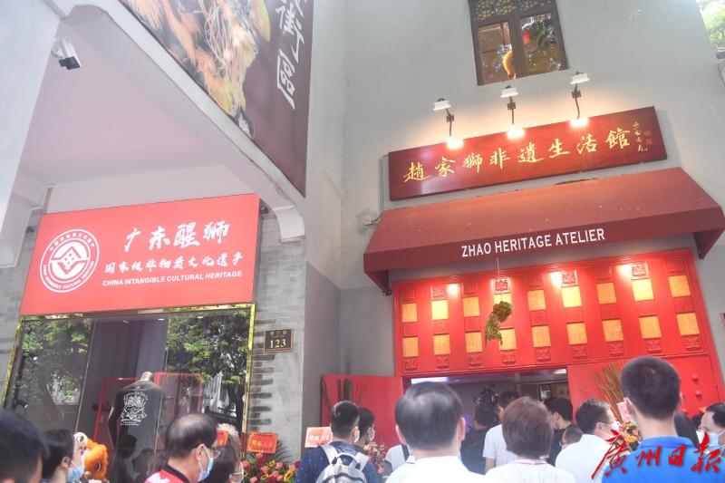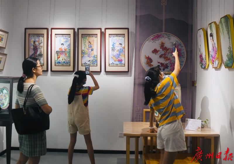 广州日报全媒体记者在现场看到,非遗街区有广彩、广绣、珐琅、骨雕、榄雕、醒狮、饼印、箫笛、古琴等10个项目进驻。10间非遗大师工作室集展示、展销、体验、传承、交流、培训等功能为一体,总有一项功能满足流连景区的你。