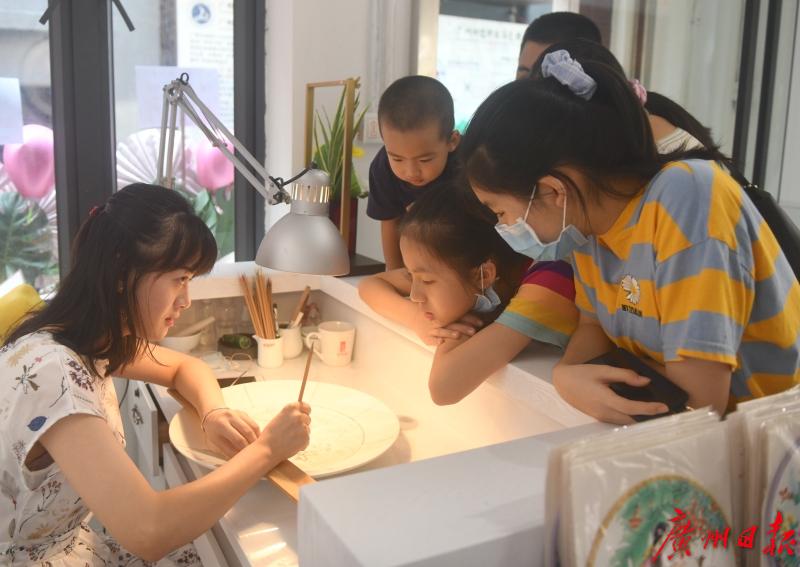 ▲小朋友观看广彩制作过程。